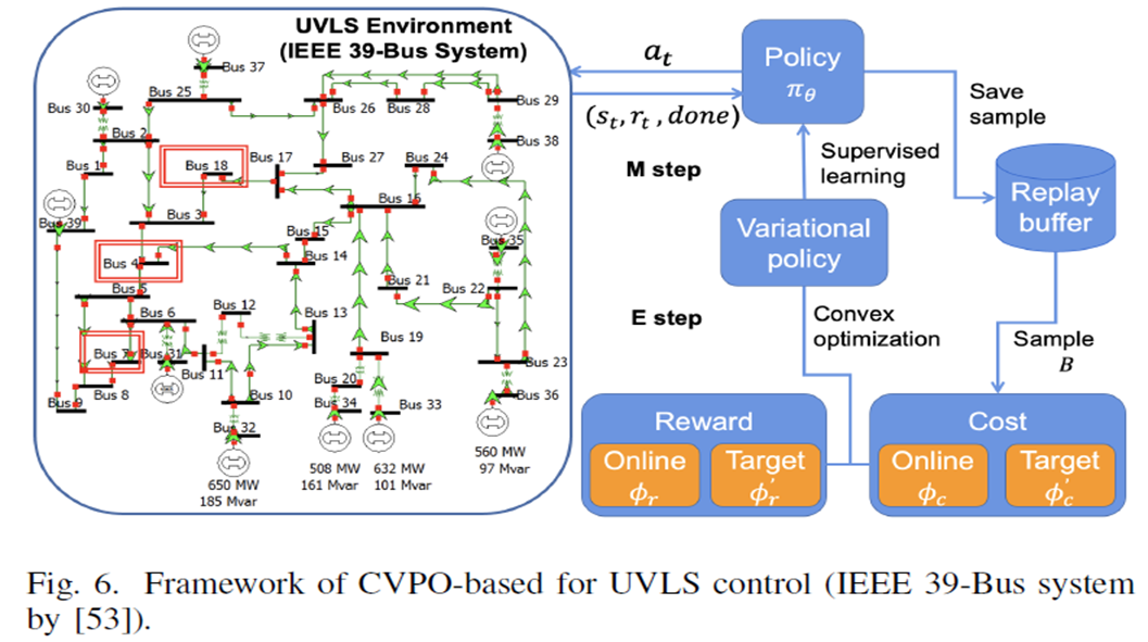 -> CVPO 기반의 UVLS 제어 시스템은 전력 계통의 안전성을 향상시키고 전압 강하 이벤트에 효과적으로 대응하기 위한 전략을 학습하는데 사용됨
