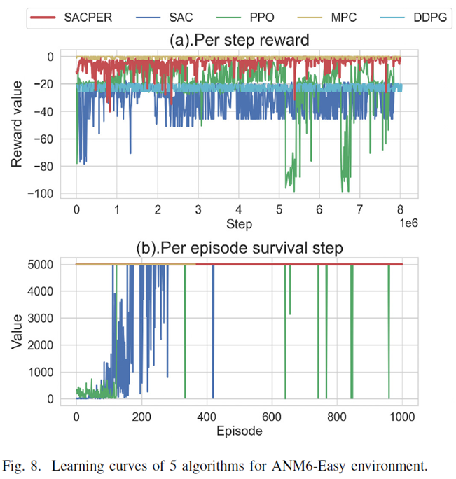 위의 그래프들을 통해서 SACPER이 다른 알고리즘에 비해 상대적으로 안정적이고 높은 보상을 받음